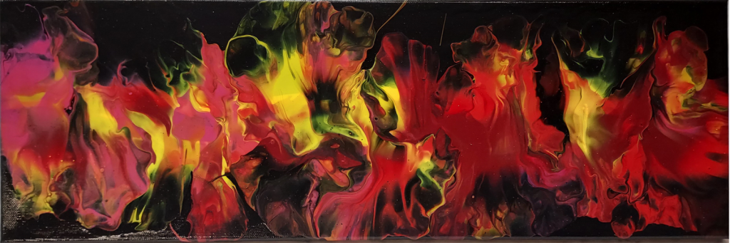 Kuvaus: Kuumat, punakeltaiset liekit mustalla taustalla