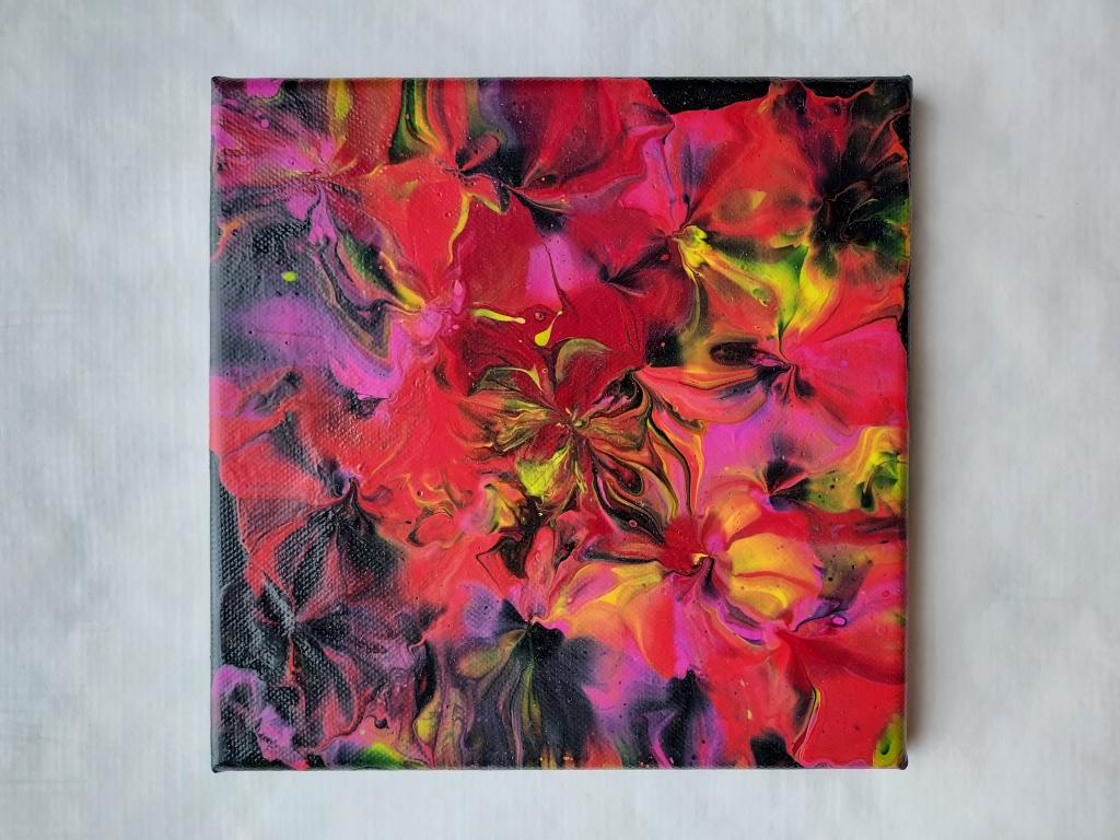 Kuvaus: Värikäs abstraktinen kukkateos