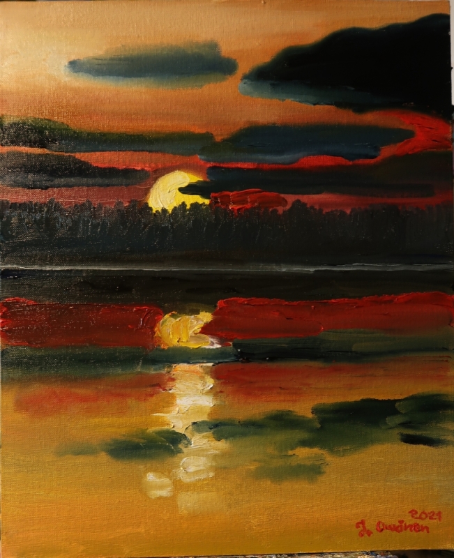 Kuvaus: maalattu kangaspahvipohjalle, kehystämätön