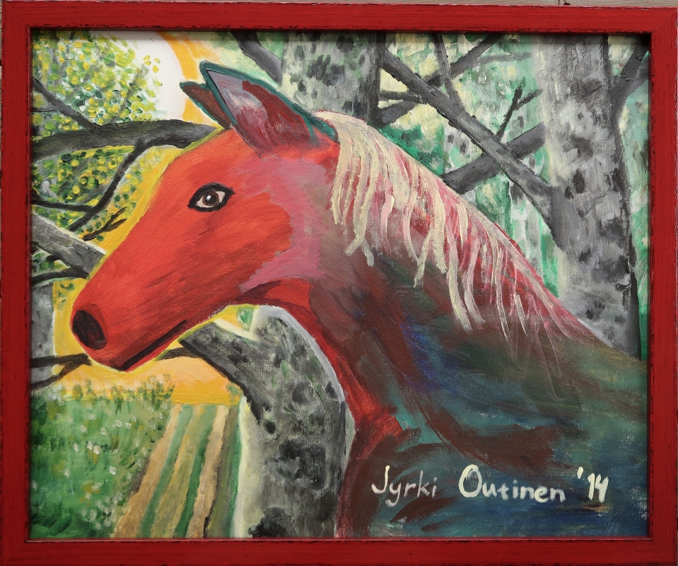 Kuvaus: maalattu kangaspahvipohjalle, kehystetty