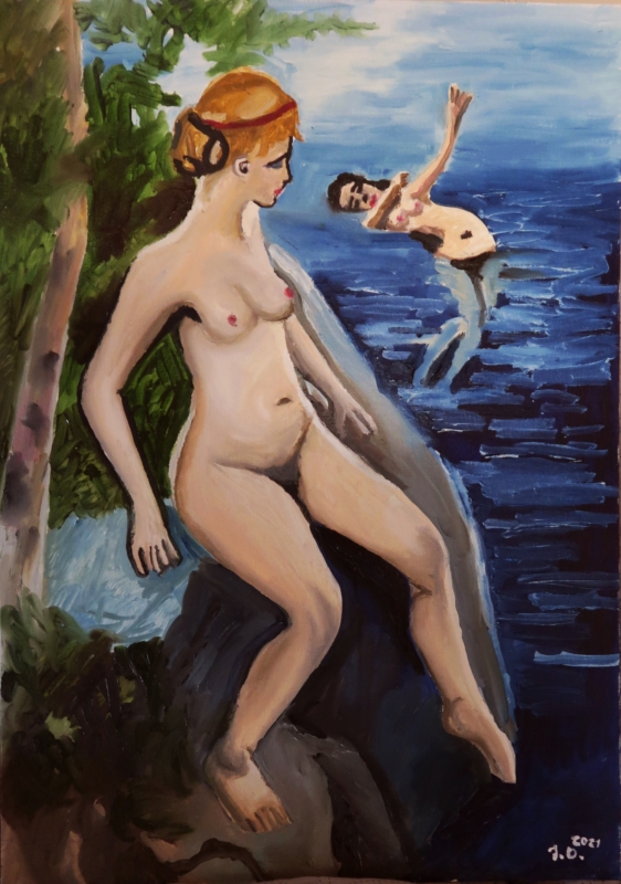 Aino rannalla, Gallénin (1889) mukaan