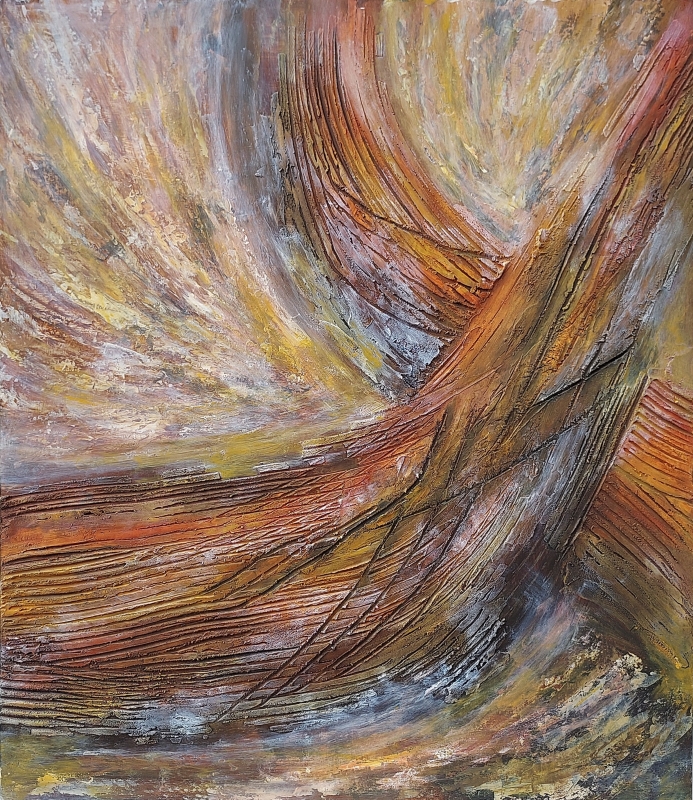 Kuvaus: Värikäs, runsaalla struktuurilla varustettu teos