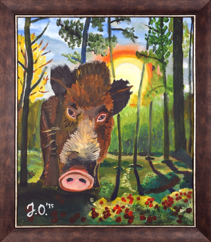 Kuvaus: maalattu täysin suoralle kangaspahvipohjalle, kehystetty, hinta sis. pk.