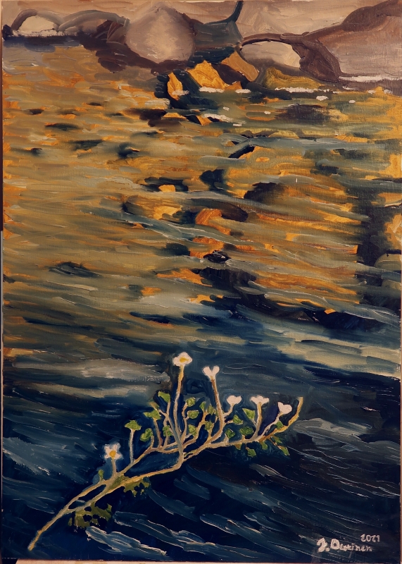 Kuvaus: maalattu jämerälle kangaspahvipohjalle, ei kehystä; postik. sis. hintaan; värit paremmat kuin valokuvassa