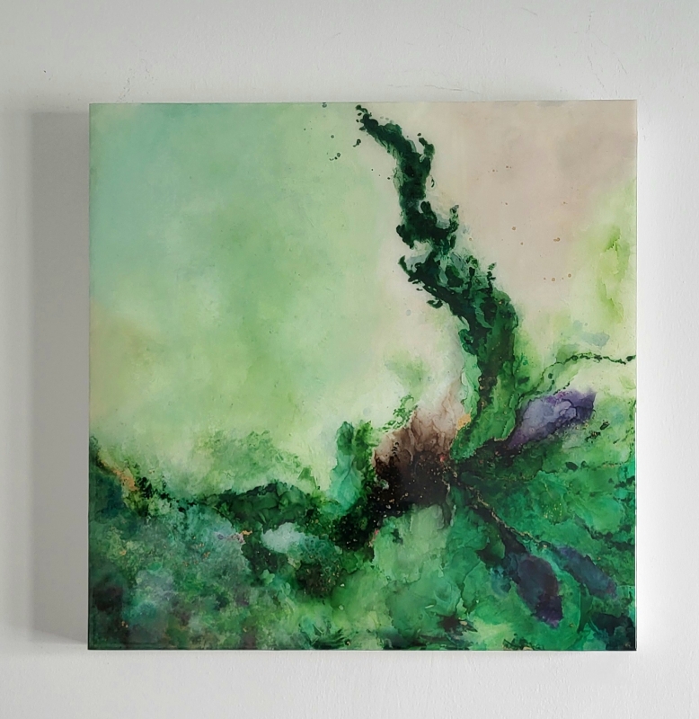 Kuvaus: Upea kiiltäväpintainen epoksihartsilla päällystetty taulu, joka on tehty alkoholimusteilla ja akryylimaalilla. Teos on nähtävillä Kaapelitehtaalla Suomen Taiteilijoiden vuosinäyttelyssä 1.9. asti, jonka jälkeen se on saatavilla. Nouto Lähetyskulut Matkahuollon kautta.