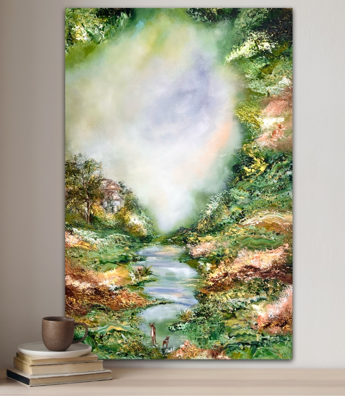 Akryylimaalaus ”Tyyneys metsän syylissä”
