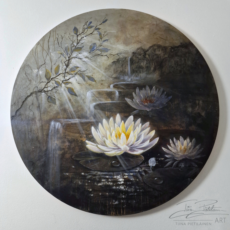 Kuvaus: Akryylimaaleilla canvakselle maalattu teos