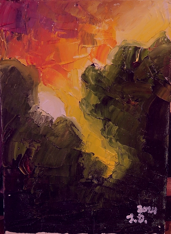 Kuvaus: maalattu kangaspahvipohjalle, ei kehystä; postik. sis. hintaan