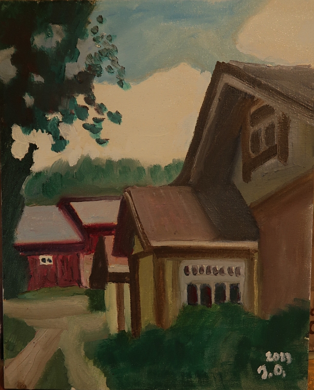 Kuvaus: maalattu jämerälle kangaspahvipohjalle, ei kehystä; postik. sis. hintaan