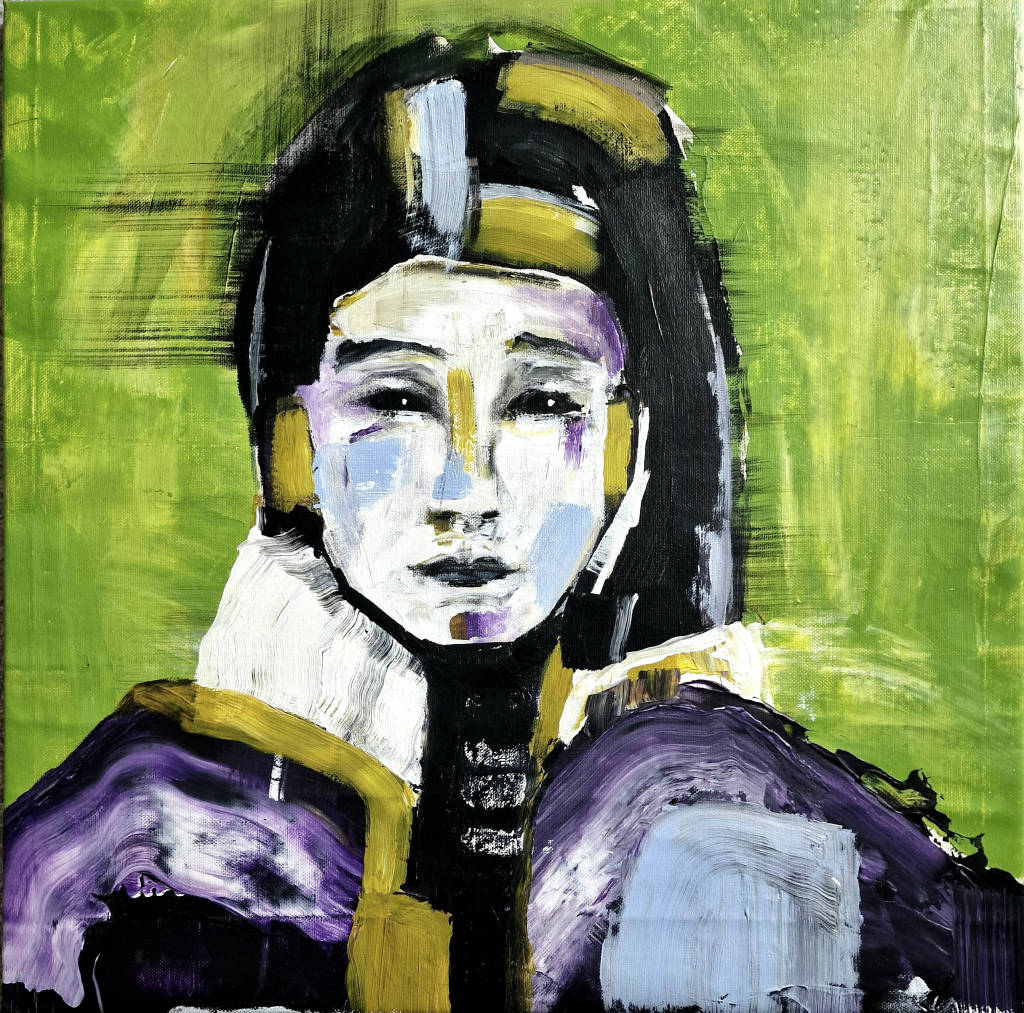 Kuvaus: Voimakas vastaväri teos pellavakankaalle, joka on nidottu kiilapuiden ulkoreunoille teoksen reunoille. Voi ripustaa myös ilman erillisiä kehyksiä.