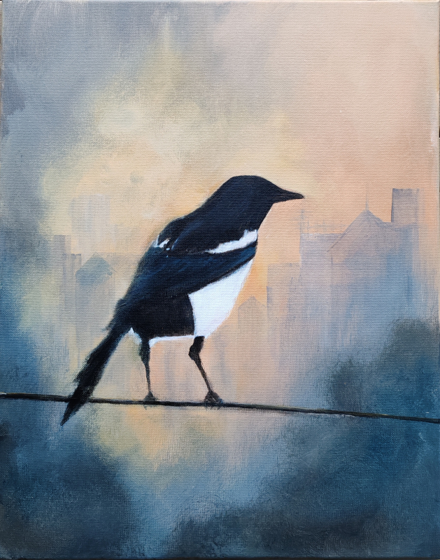 Kuvaus: Teos parhaillaan näyttelyssäni Galleria Palkki, Näyttelykehykset (tammen värinen puulista) paikallaan