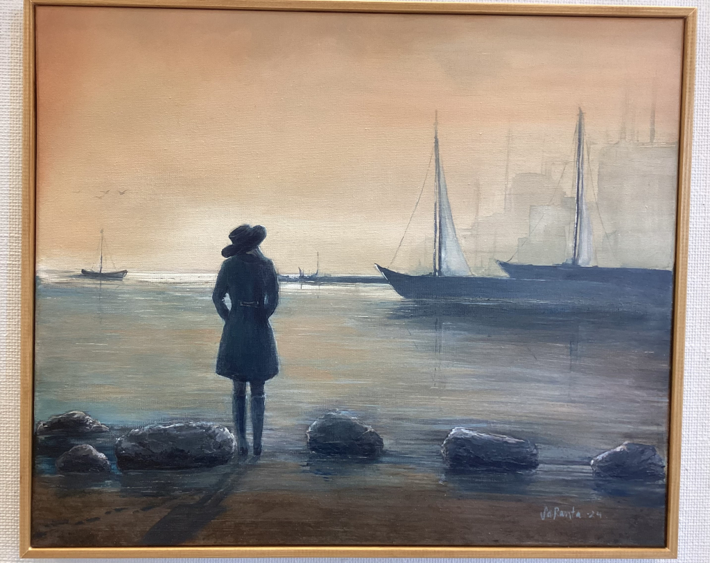 Kuvaus: Teos 3.10.asti Galleria Palkki. Näyttelykehys (tammen värinen puulista) paikallaan