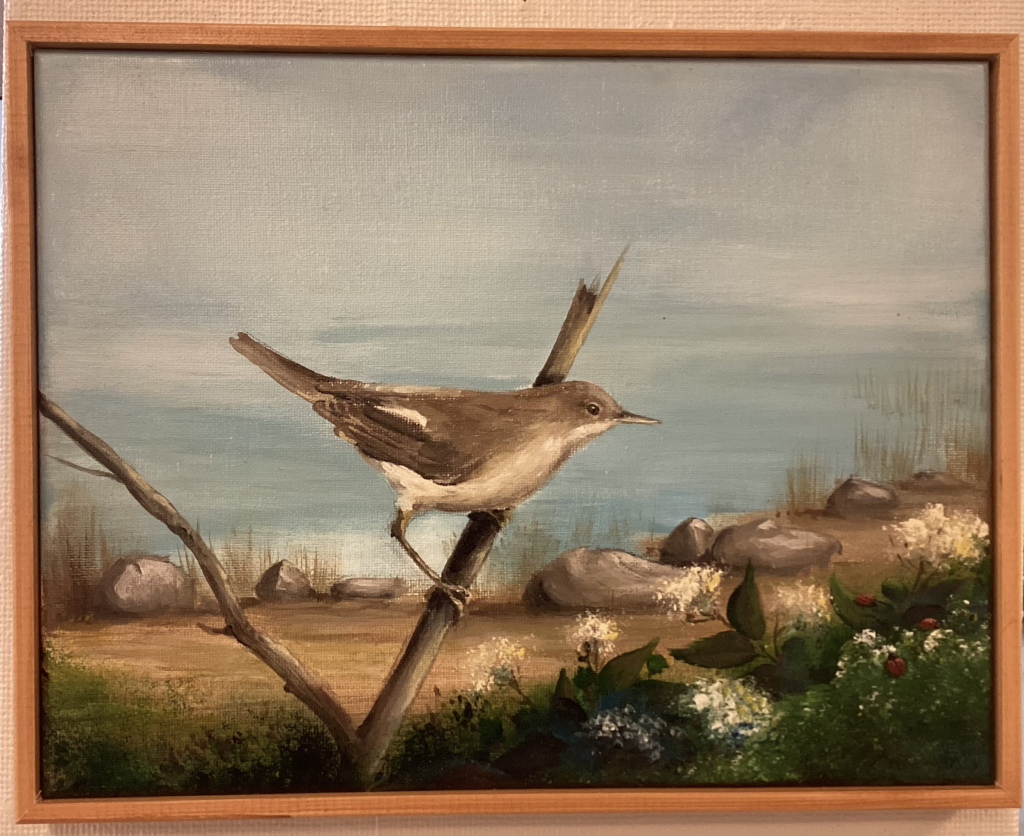 Kuvaus: Teos 3.10.asti Galleria Palkki. Näyttelykehys (tammen värinen puulista) paikallaan