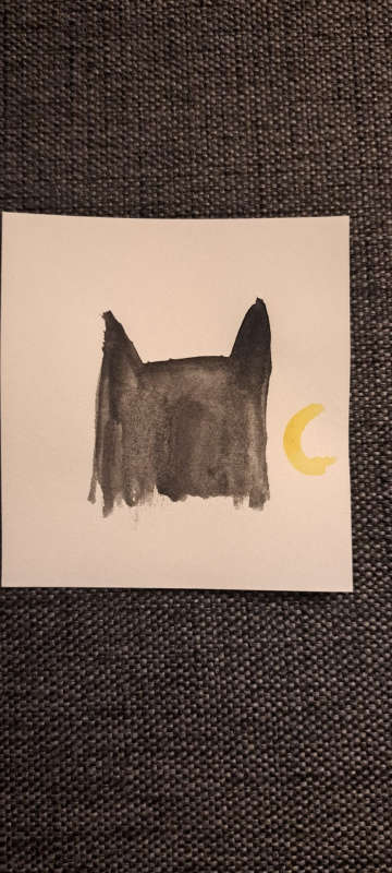 Kuvaus: A black cat or the batman staring happily a banana