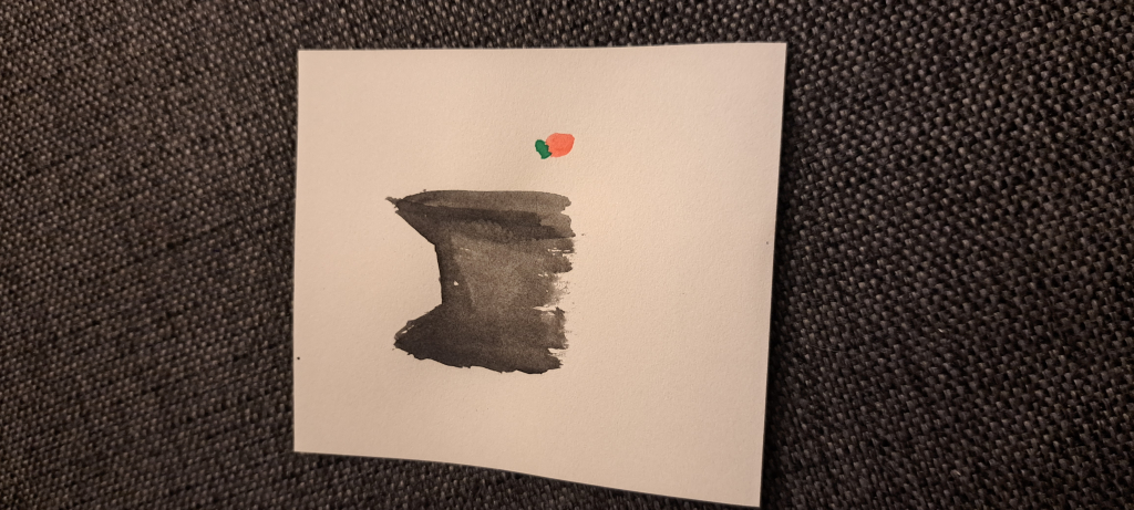 Kuvaus: A black cat or the batman staring a starwberry