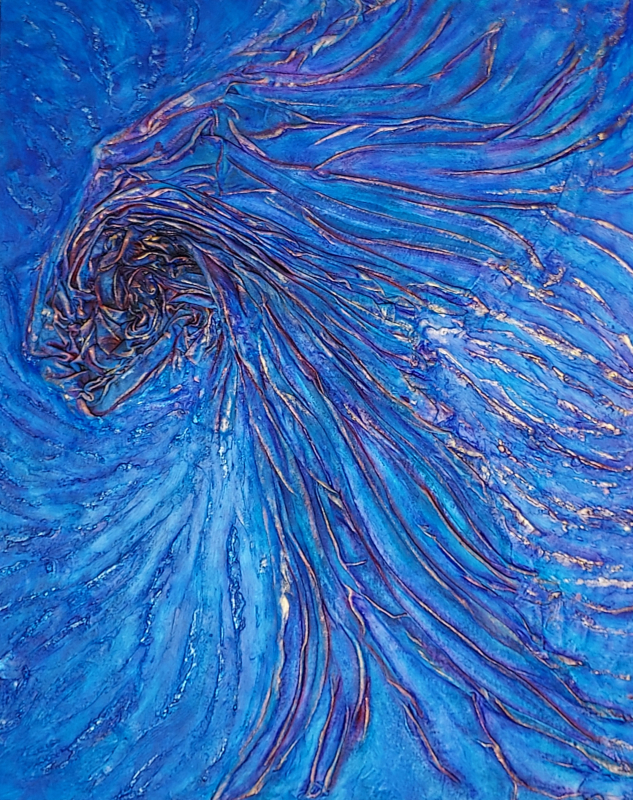 Kuvaus: Rouhealla struktuurilla varustettu kylmän sininen abstraktiteos