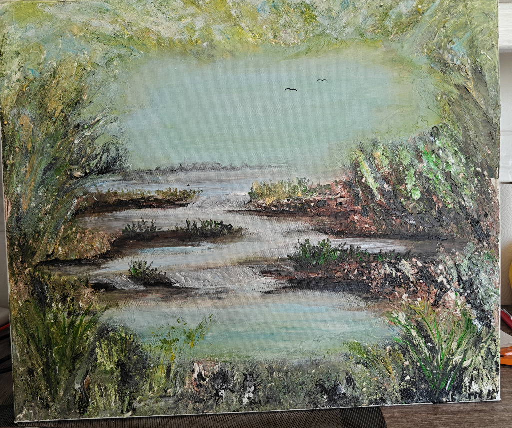 Kuvaus: ​Uniikki teos, jossa yhdistyvät luonnon pehmeät sävyt ja rauhoittava tunnelma. Maalauksen elävä pinta tuo tilaan syvyyttä ja arvokasta tunnetta.