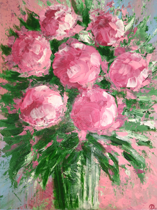 Kuvaus: Kesäinen kukkamaalaus kangaspahvipohjalla. Ilmainen toimitus.