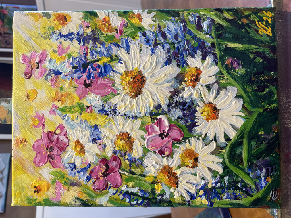 Kuvaus: Värikäs kukkamaalaus päivänkakkaroilla